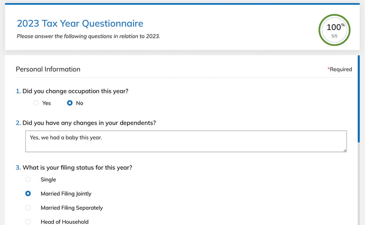Convert PDFs to fillable forms. eSign engagement letters, complete organizers, upload source documents.