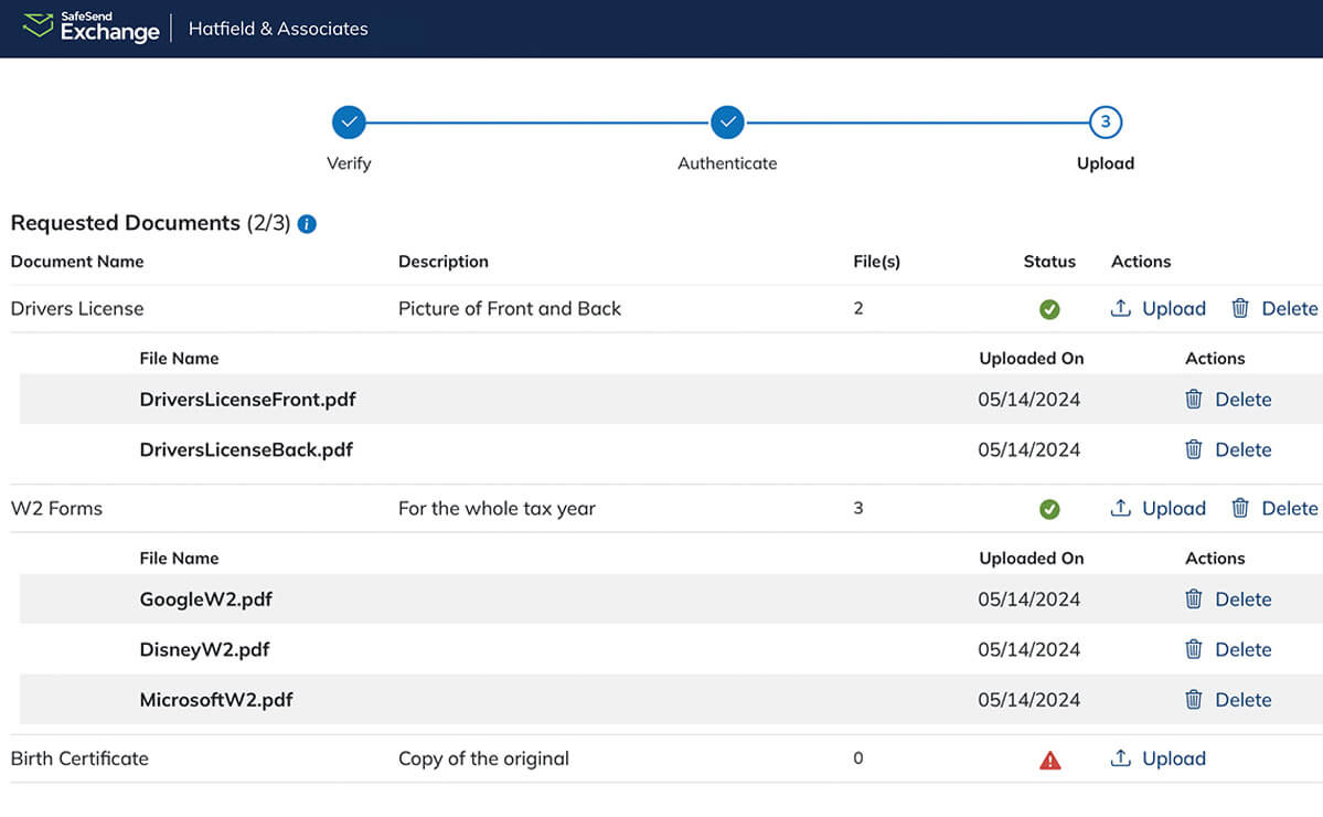 A one-stop shop for engagement letters, fillable organizers, secure source document gathering, tax return assembly and delivery with eSign. SafeSend One gives your clients a guided and intuitive experience across all touchpoints.